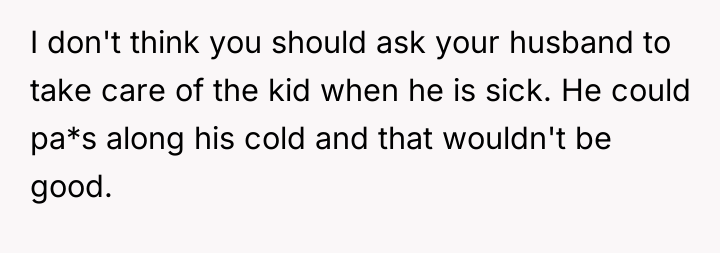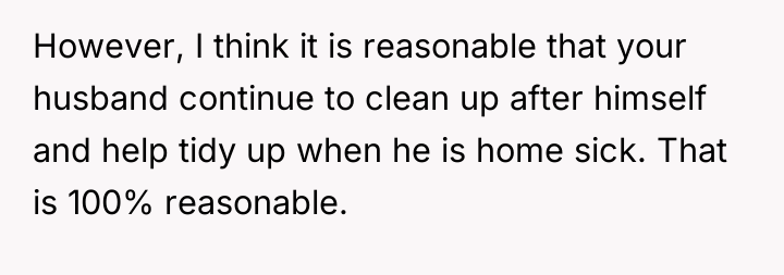Is the OP unreasonable for expecting her husband to manage the typical responsibilities of childcare and cleanup when he is sick, or is the husband justified in needing full recovery time when ill, even if it means the OP takes on the entire load?
