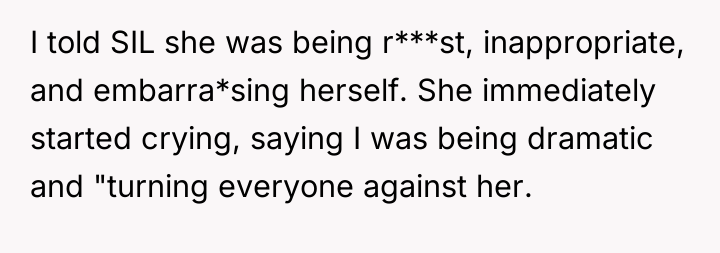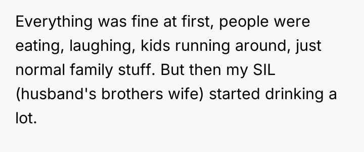 AITAH for calling out my SIL after she got wasted and made r***st jokes, ruining our family gathering?