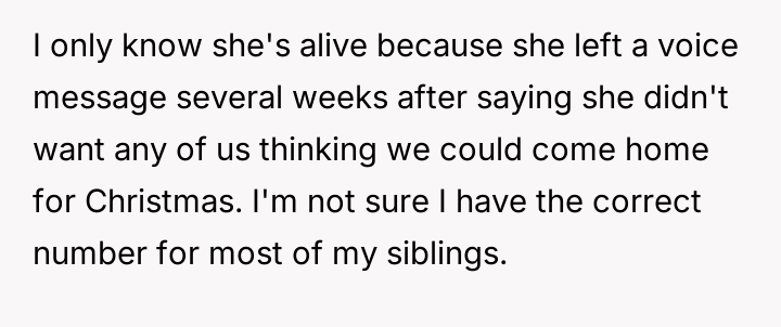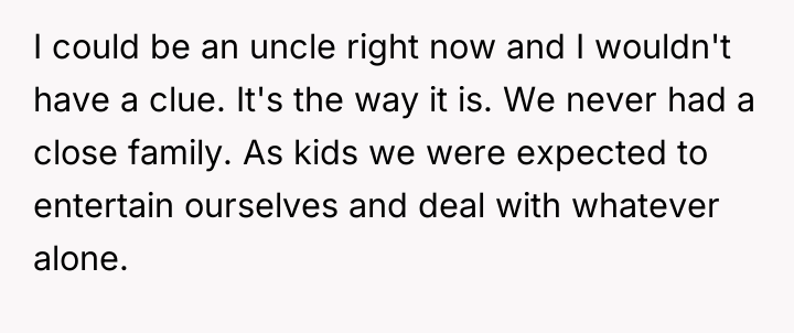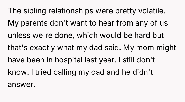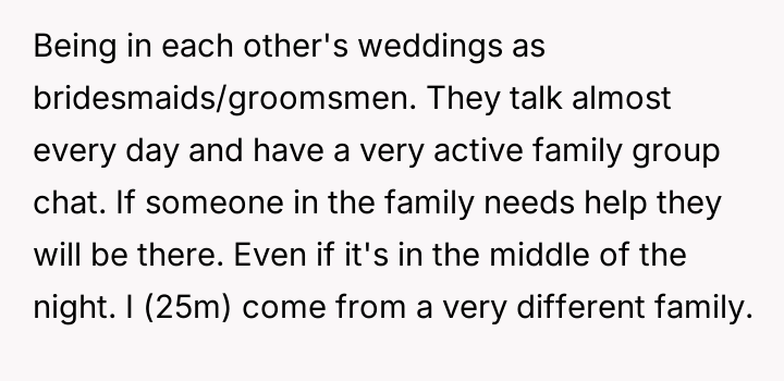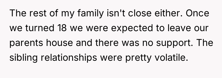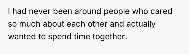 She comes from a haven of connection and care, a tight-knit family bound by shared moments and unwavering support. Their lives are woven together with laughter, daily conversations, and a promise to be there for one another, even in the darkest hours—a reality that highlights the deep void he feels in his own family story.