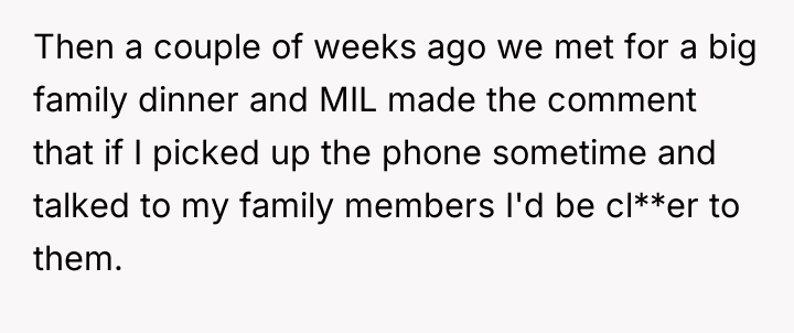 AITA for oversharing to my ILs when they called me on being a typical guy who doesn't put effort into maintaining his family relationships?