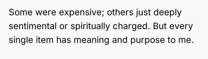 AITAH for demanding my boyfriend’s sister pay me back for the cost of the spiritual materials she threw out?