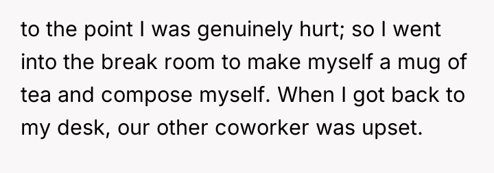 The OP’s action was emotionally understandable but poorly timed and executed. A more constructive approach would have been to use 'I' statements focusing purely on the feeling, without comparing the coworker's memory to newer employees, and possibly deferring the detailed conversation until the immediate crisis had passed. While boundaries are crucial, they must be communicated with sensitivity to the relationship context, especially in a shared workplace environment.