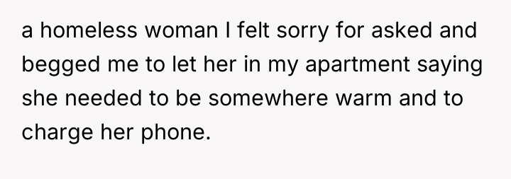 AITA for not letting a homeless woman in my apartment?