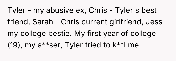 As renowned researcher Dr. Brené Brown explains, “Boundaries are the distance at which I can love you and me simultaneously.” This situation highlights a catastrophic failure in personal boundaries, both on the part of the OP in maintaining contact with individuals linked to her trauma (Chris, Jess) and in the extreme violation of boundaries perpetrated by Chris and Tyler.