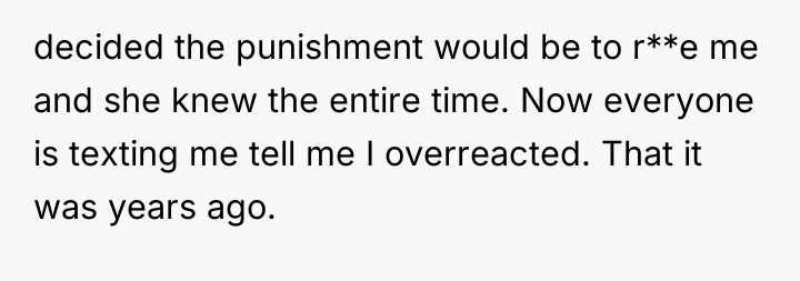 The OP's actions were an appropriate, albeit socially disruptive, expression of justified rage and horror upon learning a deeply hidden truth about a past assault. Constructively, in future confrontations involving volatile emotional truths, practicing an 'exit strategy' immediately upon confirmation of triggering information—leaving before the point of 'flooding'—can help maintain personal agency and reduce potential fallout, though this is difficult when facing such betrayal.