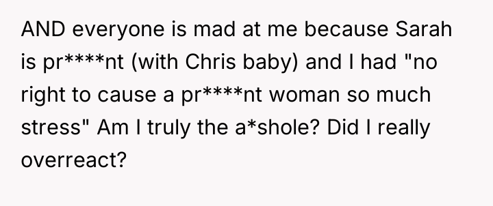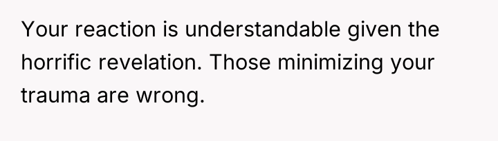 Given the profound betrayal and the confirmation of a planned violent attack, was the OP's intense, public reaction an understandable consequence of suppressed trauma being violently re-triggered, or did her actions, regardless of the cause, cross a line regarding acceptable behavior in a social setting, especially concerning the pregnant woman present?