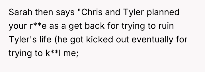 The original poster (OP) experienced a severe trauma, learning that a rape she suffered was premeditated by her former abuser and his friend, with her college friend allegedly knowing about the conspiracy. Her reaction, though emotionally devastating and resulting in a public outburst, stemmed directly from this shocking revelation about the planned nature of the violence and the betrayal of trust by her supposed friend.