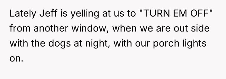 Jeff, a gentle soul trapped in a world that often feels too complex, found himself fixated on the flickering lights and movements beyond his window, a small ladder his perch to a world he could observe but never fully grasp. His innocent demands to "TURN EM OFF" at night are not just about the lights—they are a poignant cry for understanding in a shared space where neighbors’ lives intersect in unexpected and heart-wrenching ways.