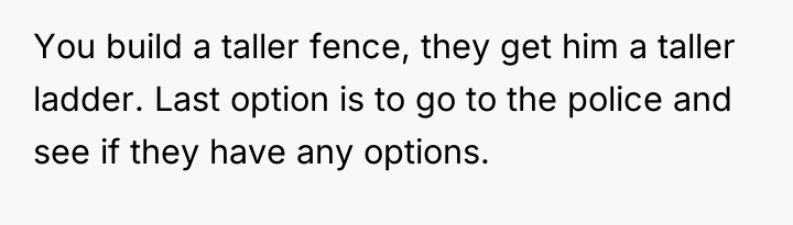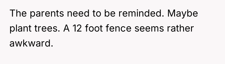 Is the OP justified in escalating the physical barrier to an extreme height (12ft fence) to regain privacy, or would further direct communication with the parents, focused on establishing firm, clear behavioral boundaries for their son, be the more appropriate next step in resolving this strained neighborly relationship?