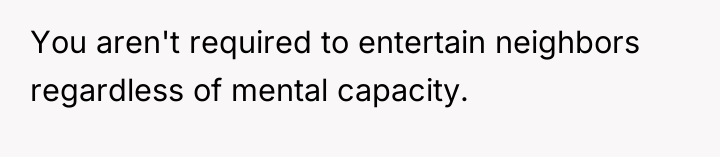 As renowned researcher Dr. Brené Brown explains, “Boundaries are the distance at which I can love you and me simultaneously.” This situation presents a complex boundary challenge where the OP is struggling to maintain their personal space while also dealing with neighbors whose son has significant cognitive differences that affect his social awareness.