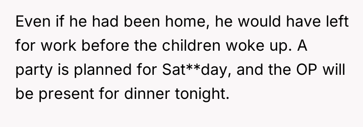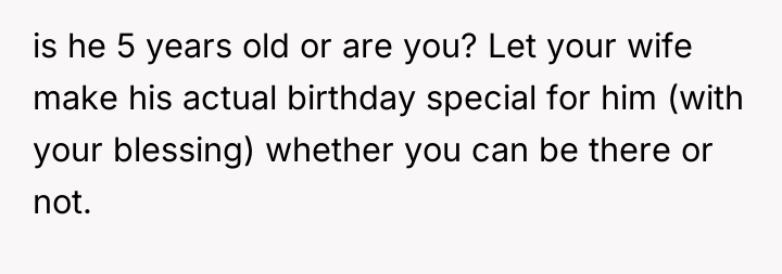 This situation highlights a misalignment in how the OP and his wife define shared responsibility and shared experience within their marriage, particularly concerning significant family milestones. The OP views the act of presenting a joint gift as a relational event that requires both parents present, likely connecting the timing to his emotional commitment despite his physical absence due to work. He interprets the wife's unilateral action as prioritizing her own immediate gratification (experiencing the joy alone) over honoring their partnership. Conversely, the wife appears to be acting from a place of protecting the child's immediate emotional needs, believing that waiting several days for the primary celebration (Saturday's party) would cause unnecessary distress for a five-year-old. Her action, while bypassing the OP, may stem from a functional desire to manage the child's excitement effectively.