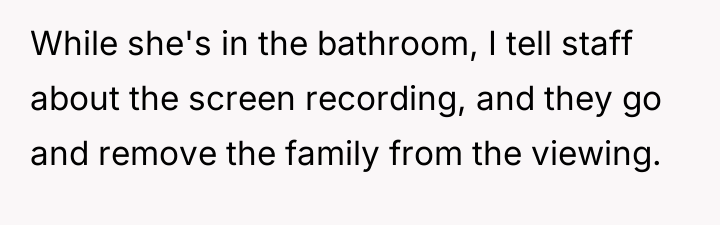 The OP's primary motivation was twofold: addressing the clear violation of the theater's rules (recording the screen) and responding to their sister's expressed discomfort regarding the content and the family's reaction to it. Bringing very young children to an R-rated film is often seen as a lapse in parental judgment, but the direct violation (recording) gave the OP a legitimate, objective reason to involve staff. The sister’s discomfort amplified the need for intervention. While leaving the theater afterward might feel like an overreaction or a concession, it was a direct result of the circumstances created by the other family.