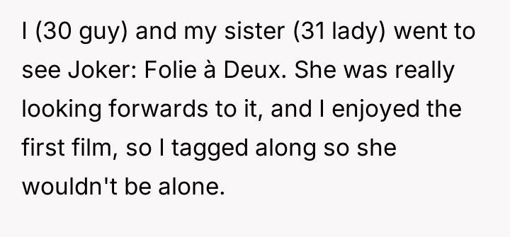In the quiet anticipation of a shared escape, a brother and sister settle into their seats, ready to lose themselves in the haunting world of Joker: Folie à Deux. What begins as a simple night out quickly twists into a confrontation with discomfort and disillusionment, as the innocence of childhood collides with the raw, unfiltered darkness unfolding on the screen.