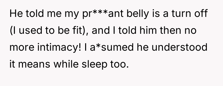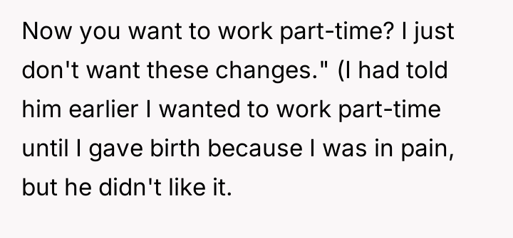 As renowned psychologist Dr. John Gottman explains, “The most important thing in the world is not the problem, but the relationship you have with the person you are having the problem with.” This statement highlights that even when conflicts arise, the underlying connection and communication structure dictate the outcome. In this situation, the relationship structure was deeply flawed, evidenced by the partner’s explicit criticisms regarding the OP's pregnancy-related physical changes and her desire to adjust her work schedule.