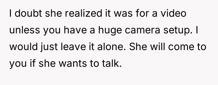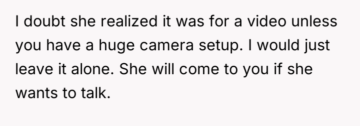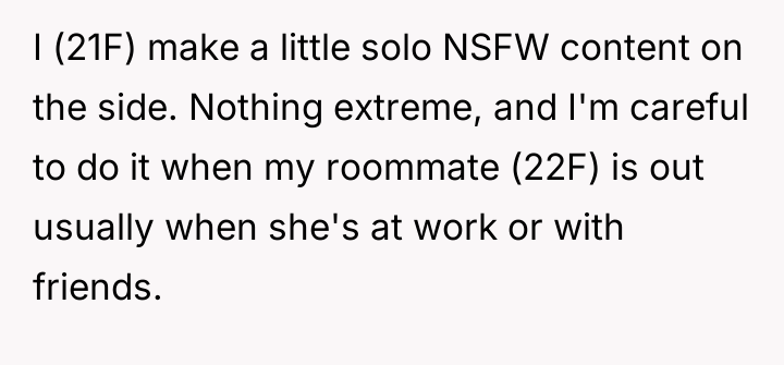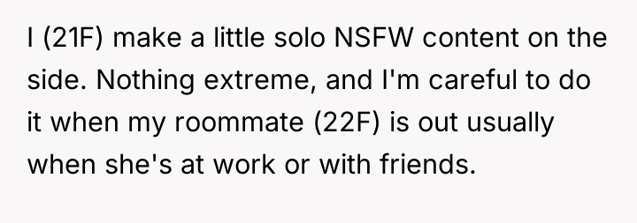 The OP’s actions regarding the private content creation were generally appropriate given their efforts to use separate times and spaces. However, the subsequent handling requires clearer communication. Bringing up the incident directly, perhaps framing it as an apology for potential noise or intrusion rather than a confession about the content itself, might be the most constructive path to re-establish normalcy. If the roommate does bring it up later, the OP should be prepared to calmly assert their right to private activities conducted outside of shared time and space, reinforcing healthy boundaries for the future.