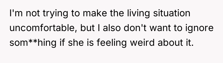 The original poster is facing a dilemma between maintaining privacy and preventing potential unspoken discomfort in a shared living situation. They are worried that their roommate may have accidentally discovered their side business involving content creation and are now caught between addressing the possible discovery, which could create awkwardness, or ignoring it, which might allow underlying tension to persist.