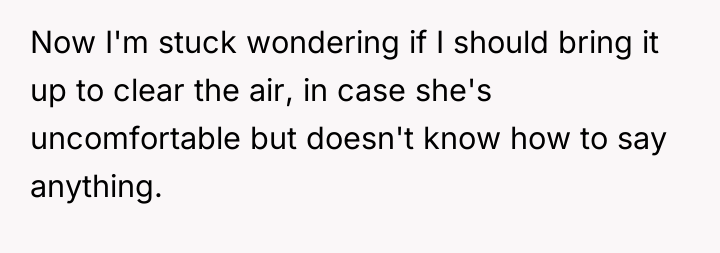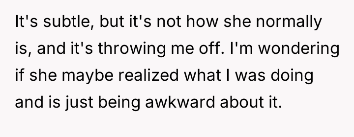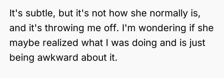 As renowned researcher Dr. Brené Brown explains, “Boundaries are the distance at which I can love you and me simultaneously.” This situation highlights a conflict where a perceived boundary violation—the accidental presence of the roommate during the OP's private activity—has immediately disrupted the established relational dynamic, even without explicit acknowledgment.