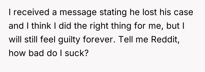 The original poster experienced a significant shift in her work environment and felt compelled to prioritize her own job security and well-being over supporting a former colleague's legal action. This decision created a deep internal conflict, leaving her feeling guilty despite recognizing the necessity of her choice for self-preservation.