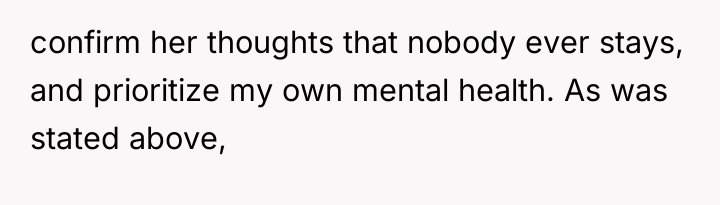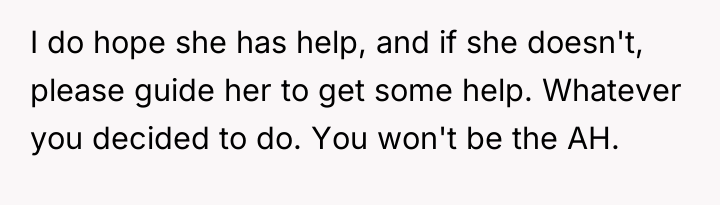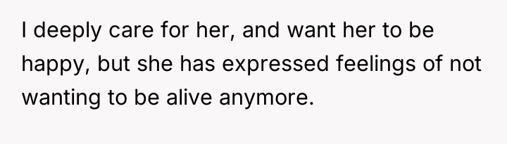 In this context, ending the relationship may not make the poster an 'asshole,' but rather someone recognizing the limits of his capacity. A constructive recommendation would be to communicate this decision gently but firmly, ensuring that before any separation, he assists his girlfriend in connecting with emergency mental health resources (like a crisis hotline or hospital intake) rather than simply abandoning her support system altogether. This honors his need for distance while fulfilling an ethical duty to ensure immediate safety.