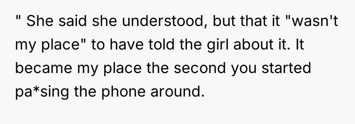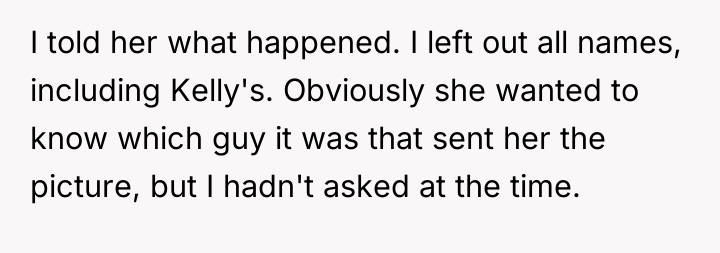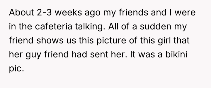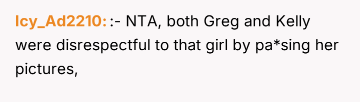 As renowned researcher Dr. Brené Brown explains, “Boundaries are the distance at which I can love you and me simultaneously.” This situation highlights a significant boundary conflict involving perceived loyalty, privacy, and ethical disclosure. The initial action—Greg sending the bikini picture and Kelly sharing it within a friend group—already established a breach of trust and privacy concerning the girl in the photograph.