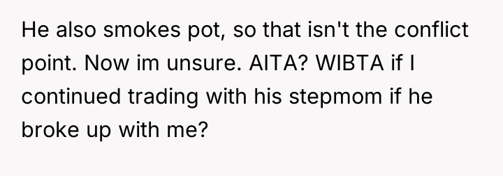 The core issue here is not the substance being traded, as both parties use cannabis, but the violation of trust stemming from secrecy within the partnership. The boyfriend's anger likely stems from feeling excluded, misled, and potentially embarrassed that his partner is actively engaging in a secret business relationship with a family member he actively avoids. This secrecy created an infidelity of disclosure, which often erodes trust more severely than the action itself. The OP's motivation appears to be financial gain and securing a superior product, which is understandable, but it was executed without considering the relational impact on the boyfriend.