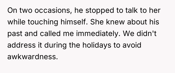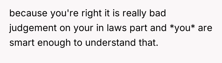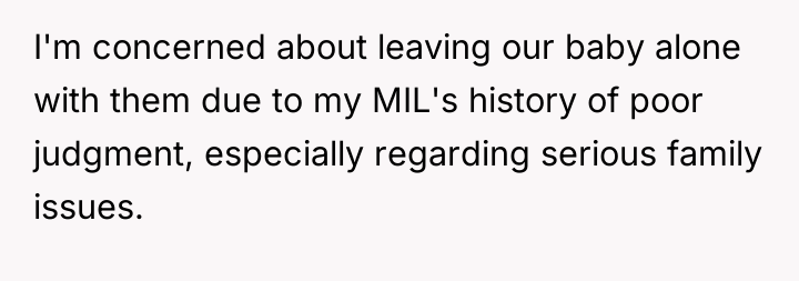 Given the history of concerning behavior, lack of accountability from the brother-in-law, and the mother-in-law's clear pattern of dismissiveness regarding serious safety issues, the central question remains: Is it ever safe to leave a vulnerable infant in the care of grandparents whose judgment has been proven unreliable in protecting other family members from known threats?