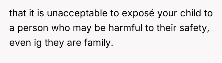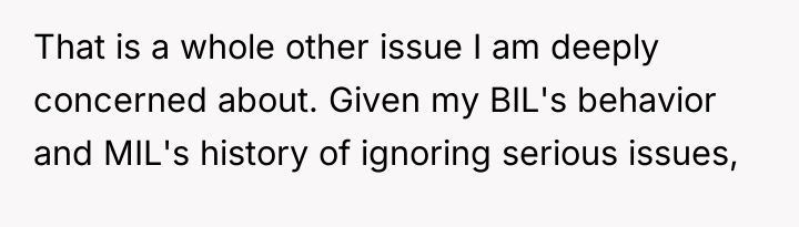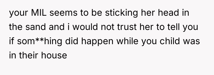 The OP's protective instincts regarding her child are entirely appropriate and necessary. When caregivers ignore documented predatory behavior, they become complicit in creating an unsafe environment. A constructive recommendation involves establishing firm, non-negotiable boundaries: zero unsupervised time with the in-laws until the BIL is verifiably living elsewhere and has demonstrated sustained, professional accountability for his actions. Furthermore, the OP and her husband must agree on communication: they need to present a united front, focusing on documented facts (the incidents) rather than emotional arguments, making it clear that any claim on the baby must include verifiable safety standards for all household members.