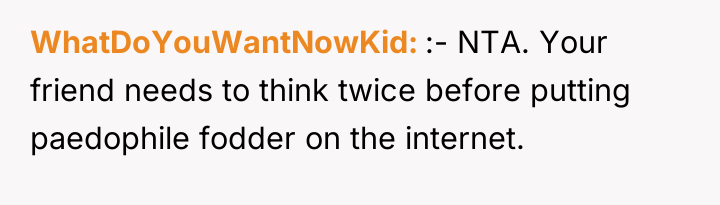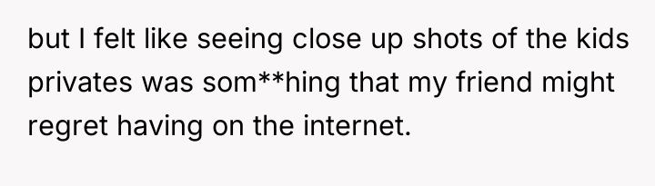 The friend's motivation for posting, likely pride or simple documentation, clashes with the OP's motivation, which appears to be rooted in anticipating future regret or potential vulnerability for the child. The friend's subsequent reaction—labeling critics as 'rude' and facing a temporary platform ban—suggests she perceives the OP's concern (or the subsequent reporting/reaction) as an unjustified intrusion into her parenting and content decisions. This dynamic often arises when one party views an action as helpful intervention and the other views it as policing or criticism.