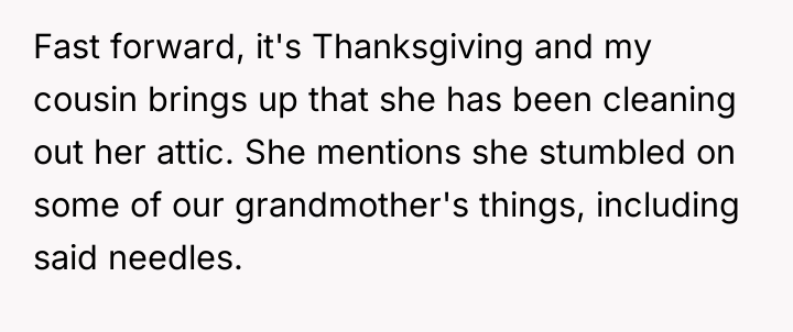 AITA for asking my cousin, who doesn’t knit, to give me our deceased grandmother’s knitting needles?