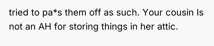 The core issue here involves perceived entitlement versus actual emotional investment. The OP nurtured a skill taught by their grandmother and specifically requested the tools associated with that bond, suggesting a deep, active sentimental connection. Conversely, the cousin secured the item through familial negotiation during a time of grief and now stores it neglected in an attic, indicating low emotional investment. The fact that the cousin received a much larger inheritance ($10,000 plus other valuables) minimizes the financial impact of returning the needles, shifting the dynamic entirely to one of emotional ownership. The family's aggressive defense of the cousin suggests a desire to maintain peace or perhaps an underlying imbalance of favoritism that was masked during the initial distribution.