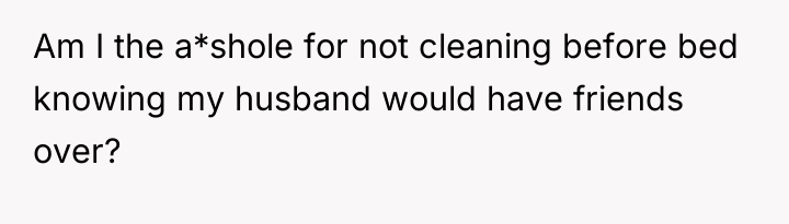 Was the OP justified in prioritizing their immediate need for rest over the perceived social obligation to clean for their husband's guests, or did the last-minute notification imply a temporary expectation of readiness that the OP failed to meet?