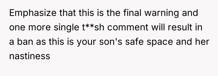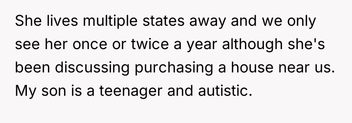 The mother-in-law's comment about the OP's autistic son being "weird" is a direct violation of the implicit social contract within a guest-host relationship, particularly when the host has previously signaled disapproval of similar behavior toward other family members. The OP's motivation is rooted in protecting their child, who needs their home to be a sanctuary from masking and external judgment. The husband's reaction, while perhaps well-intentioned to avoid immediate family rupture, risks inadvertently undermining the OP's protective stance by prioritizing the feelings of the offending adult over the established safety needs of the child.