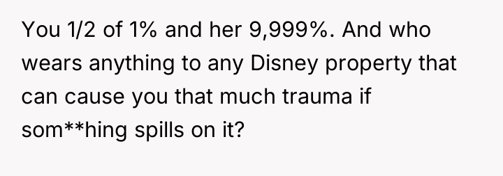 The OP's actions in apologizing and cleaning were appropriate for the accidental nature of the event. To handle similar situations more effectively, the OP could have calmly suggested contacting Disney guest services or security if the other party insisted on formal compensation, thereby transferring the negotiation to a neutral third party rather than engaging in a direct dispute on the floor.
