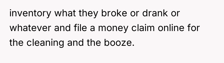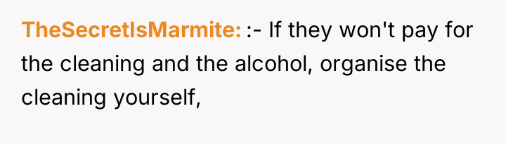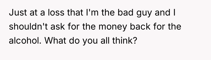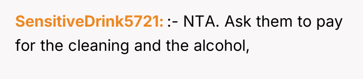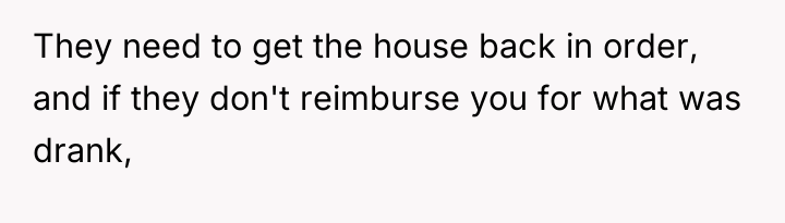 Is the OP justified in requesting reimbursement for the alcohol consumed and the cost of professional cleaning services given the agreement terms, or does the family dynamic and the OP's inherited property status obligate them to absorb these costs without complaint?