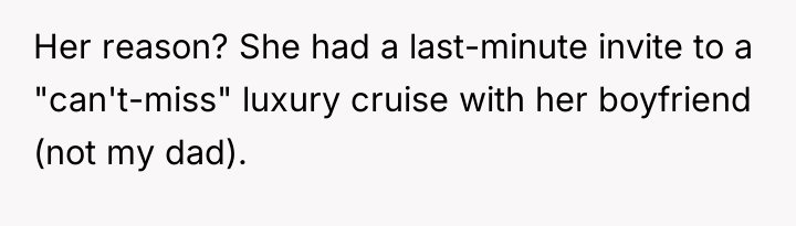She stood at the altar three months ago, surrounded by love and promises, yet painfully aware of the absence that echoed louder than any vows—the absence of her mother. Choosing a fleeting luxury cruise over her daughter's wedding, her mother’s decision carved a wound that time had yet to heal, casting a shadow over what should have been a day of pure joy.