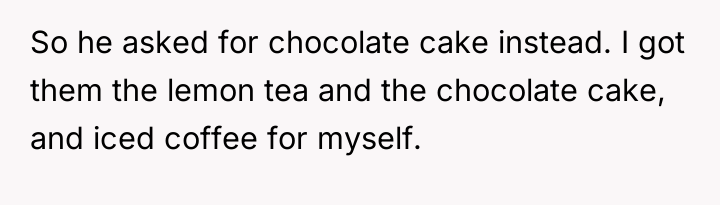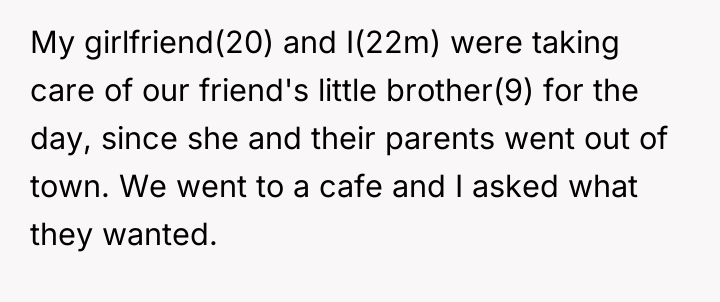 The situation involves navigating responsibility, perceived fairness, and boundary setting in a temporary caregiving role. The OP, motivated by practicality and the child's expressed alternative request (chocolate cake), ordered items based on the immediate interaction. However, the girlfriend’s concern highlights a principle of modeling behavior and respecting implicit boundaries set by the parents. While the OP did not give the child coffee, placing a highly desired, forbidden item directly in front of the child while they receive an approved treat can unintentionally undermine the parents' authority and create unnecessary emotional tension or perceived unfairness for the child.
