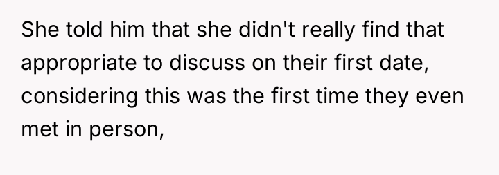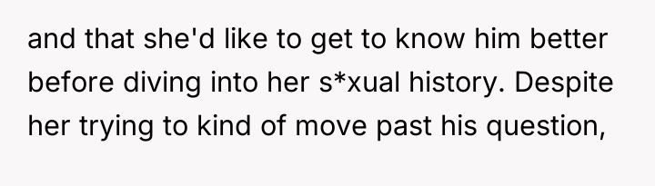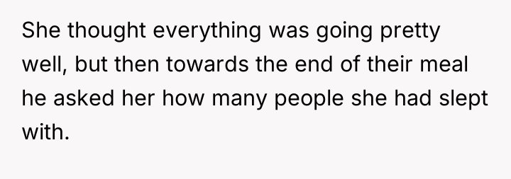 As renowned researcher Dr. Brené Brown explains, “Boundaries are the distance at which I can love you and me simultaneously.” This situation highlights a severe breach of dating boundaries early in the interaction. Jack's demand for Emily's sexual history on a first date demonstrates a lack of respect for appropriate pacing and personal privacy, forcing an intimate discussion before any mutual trust has been established.