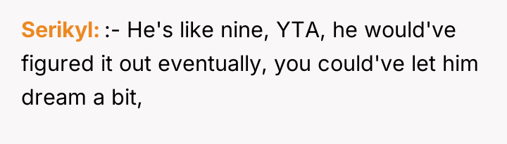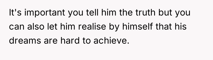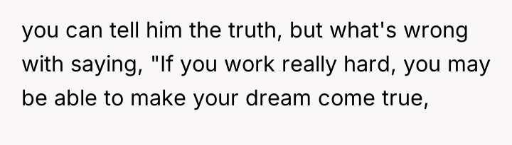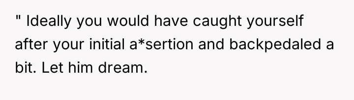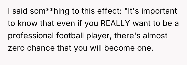 Was the father wrong to deliver a statistically accurate assessment of the slim chances of professional sports success to his son on his birthday, or was his attempt to manage unrealistic expectations a necessary form of parental honesty? The debate centers on where the balance lies between protecting a child's hope and grounding them in reality.