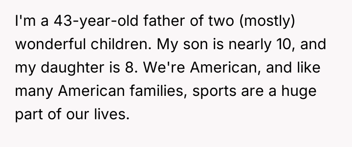 In a world where victories are often measured by trophies and stats, this father finds profound meaning in the simple joy of watching his children play. For him, sports are more than a game—they are a crucible where character is forged, teamwork is learned, and decency is practiced, shaping his children into not just athletes, but good humans.