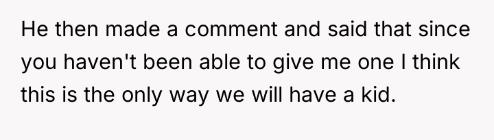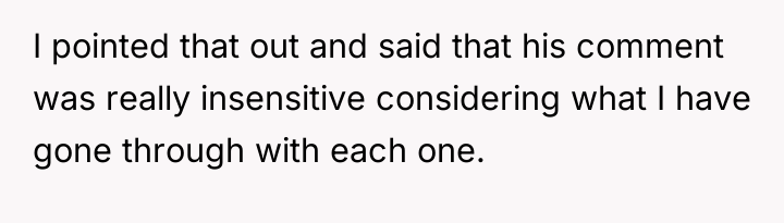 As renowned researcher Dr. Brené Brown explains, “Boundaries are the distance at which I can love you and me simultaneously.” In this situation, the conflict escalates due to a severe breach of emotional boundaries by both parties. The husband's comment, suggesting the OP failed to provide a biological child, is an invalidation of her immense physical and emotional labor during the miscarriages. This comment weaponizes her fertility struggles against her, shifting the focus from shared grief to placing blame.