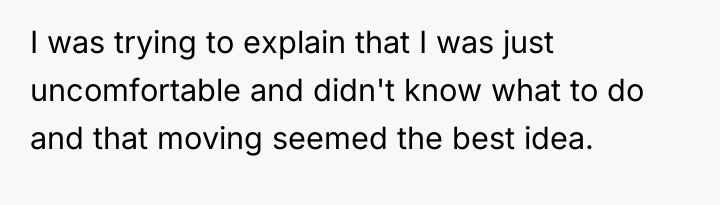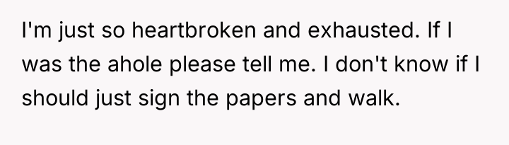 The OP's subsequent admission of feeling unsafe to be honest suggests a severe breakdown in psychological safety within the marriage. While the OP's initial action of moving rooms was perhaps clumsy, the wife’s immediate leap to divorce papers based on this single event indicates a relationship already operating at a high level of instability. The OP should immediately halt any signing of papers and seek couples counseling focused on improving conflict resolution skills and building emotional safety, rather than focusing on who was the 'A-hole' in this specific incident. Future constructive action involves clearly communicating feelings ('I feel anxious when X happens') rather than taking unilateral actions ('Let's leave this area').