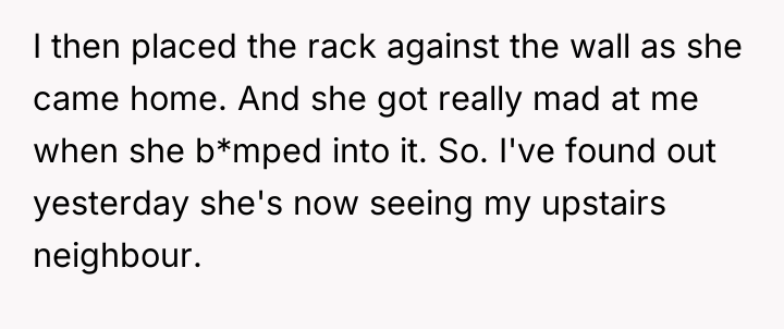 Their breakup was not a single thunderclap but a slow, relentless storm of misunderstandings and silent resentments. Small acts, once trivial, became battlegrounds—like the drying rack against the wall—symbols of a love suffocated by unspoken frustrations. As he grappled with the pain of betrayal and loss, the lines between friend and foe blurred, revealing the fragile, fragile heart of trust and the crushing weight of doubt.