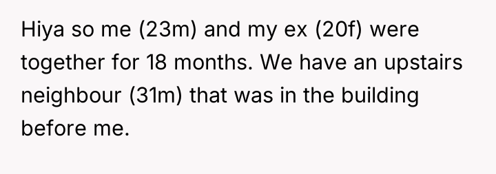 My ex just moved in with my upstairs neighbor after telling me they were just friends