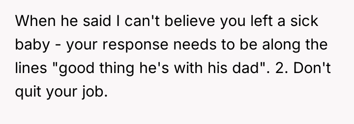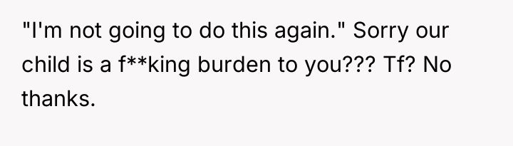 When faced with a conflict between career obligations and immediate childcare demands that conflict with a partner's evolving stance, should a parent prioritize their professional obligation after prior agreement, or defer to the partner's immediate emotional distress regarding the child's condition?