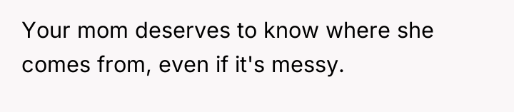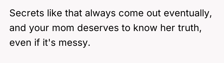 My grandma told me her biggest secret before she d*ed and now I don't know if I should tell my mom or not