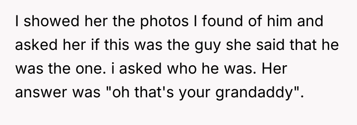 One afternoon, a simple request to find a man sparked a revelation that shattered her understanding of her family’s past. The woman she thought she knew spoke of a "grandaddy" she never mentioned before—a man whose existence challenged everything she believed about her lineage and the stories passed down through generations.
