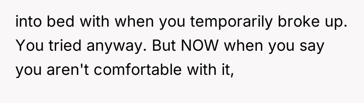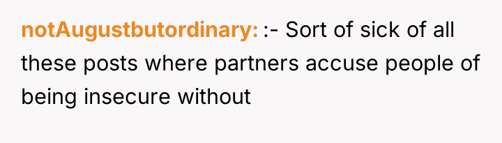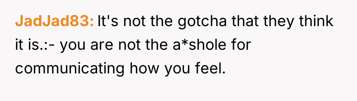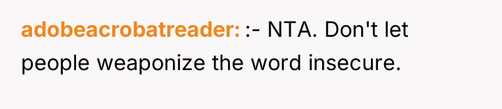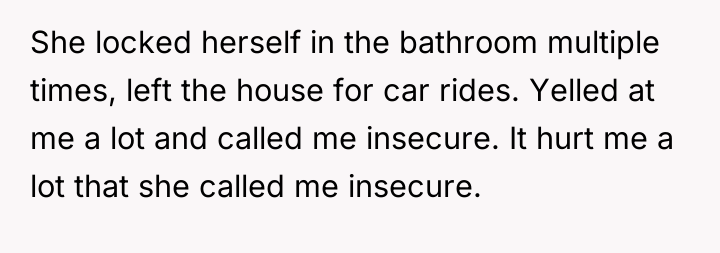 The husband's reaction, while causing distress, stems from a perceived threat to his unique position within the marriage, amplified by his pre-existing anxiety disorder. His method of confrontation, however, was likely poorly timed and accusatory ('reminds me that I’m not the only one that has slept with my wife'), which immediately triggered defensiveness in the wife. Her response—locking herself away and calling him 'insecure'—is a classic defensive maneuver that dismisses the legitimacy of his emotional experience rather than addressing the boundary issue he attempted to raise.