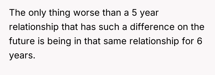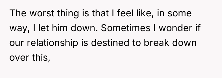 The OP's feelings of letting their partner down are a natural response to relationship stress, but they must recognize that sacrificing their desire not to have children would likely lead to deep resentment and unhappiness, ultimately destroying the relationship in a slower, more painful way. A constructive recommendation would be to seek couples counseling immediately, not to negotiate the 'yes/no' of children, but to address the breakdown in respecting foundational agreements and to jointly develop an exit strategy if the impasse remains absolute, thereby honoring the past five years with mutual respect rather than lingering resentment.