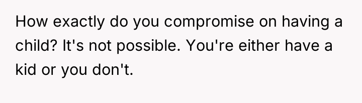 When two partners discover a previously agreed-upon, fundamental life goal—such as the presence or absence of children—is no longer shared, is the relationship ethically required to end, or does the commitment to the existing bond demand one person sacrifice their core identity for the other’s happiness?