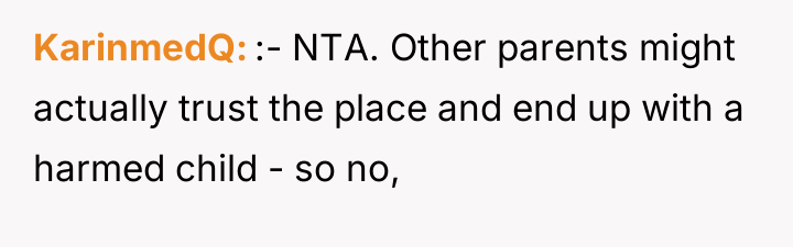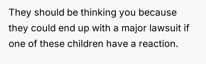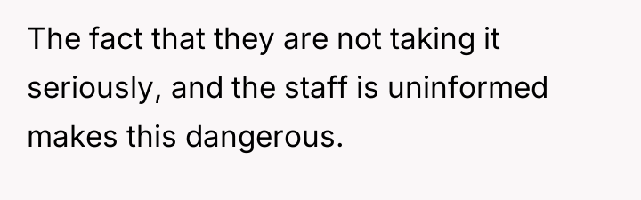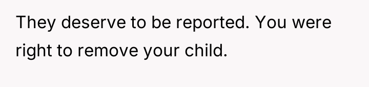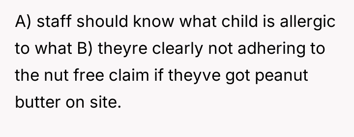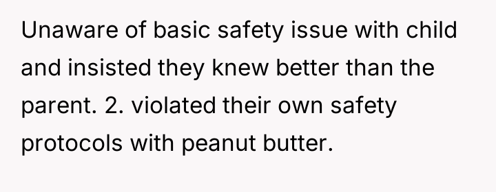Was the parent justified in immediately withdrawing their child and reporting the preschool to the state licensing board based on accumulated safety violations and staff defiance, or did the rapid escalation escalate the situation beyond what was necessary, especially since the child was not directly exposed to the allergen in the final incident? This presents a debate between absolute precautionary action versus proportional response in childcare safety management.